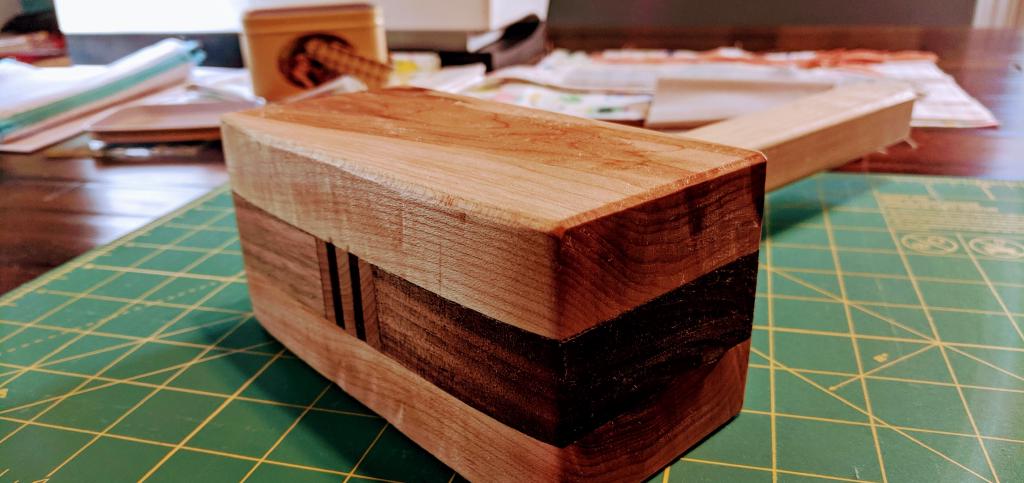 A Walnut tray to accent our new Maple kitchen island.